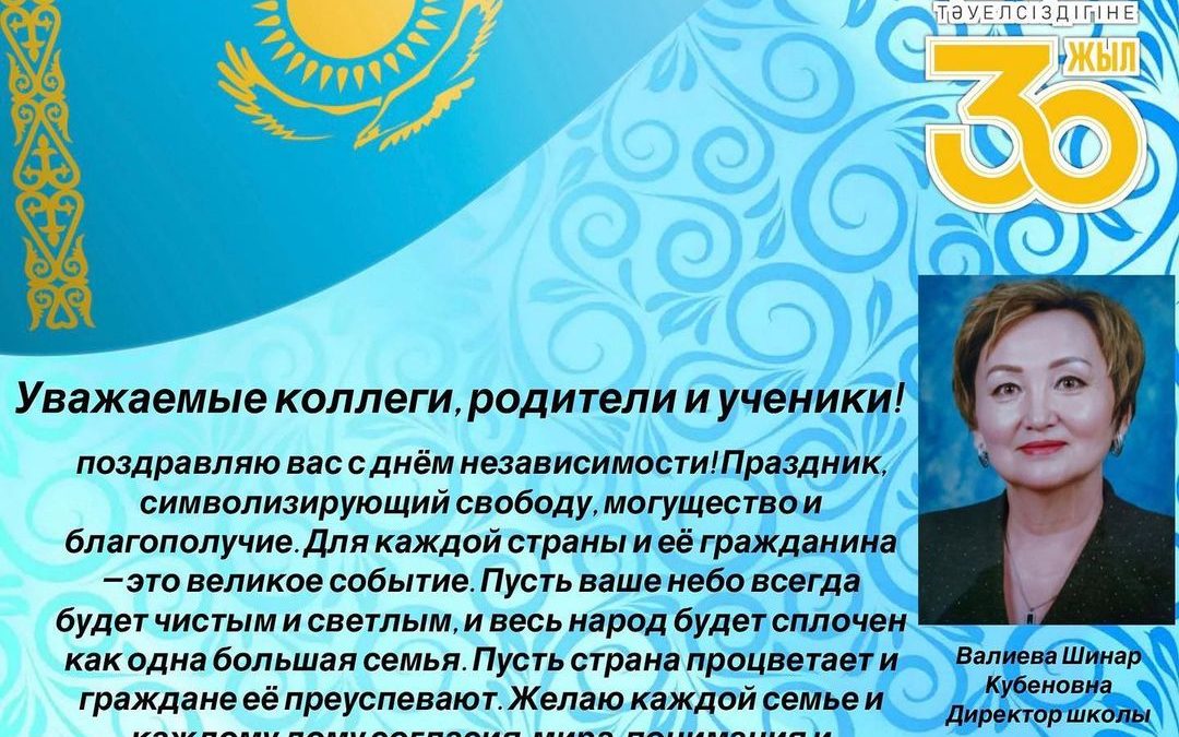 Директор школы Валиева Шинар Кубеновна поздравляет всех с праздником!